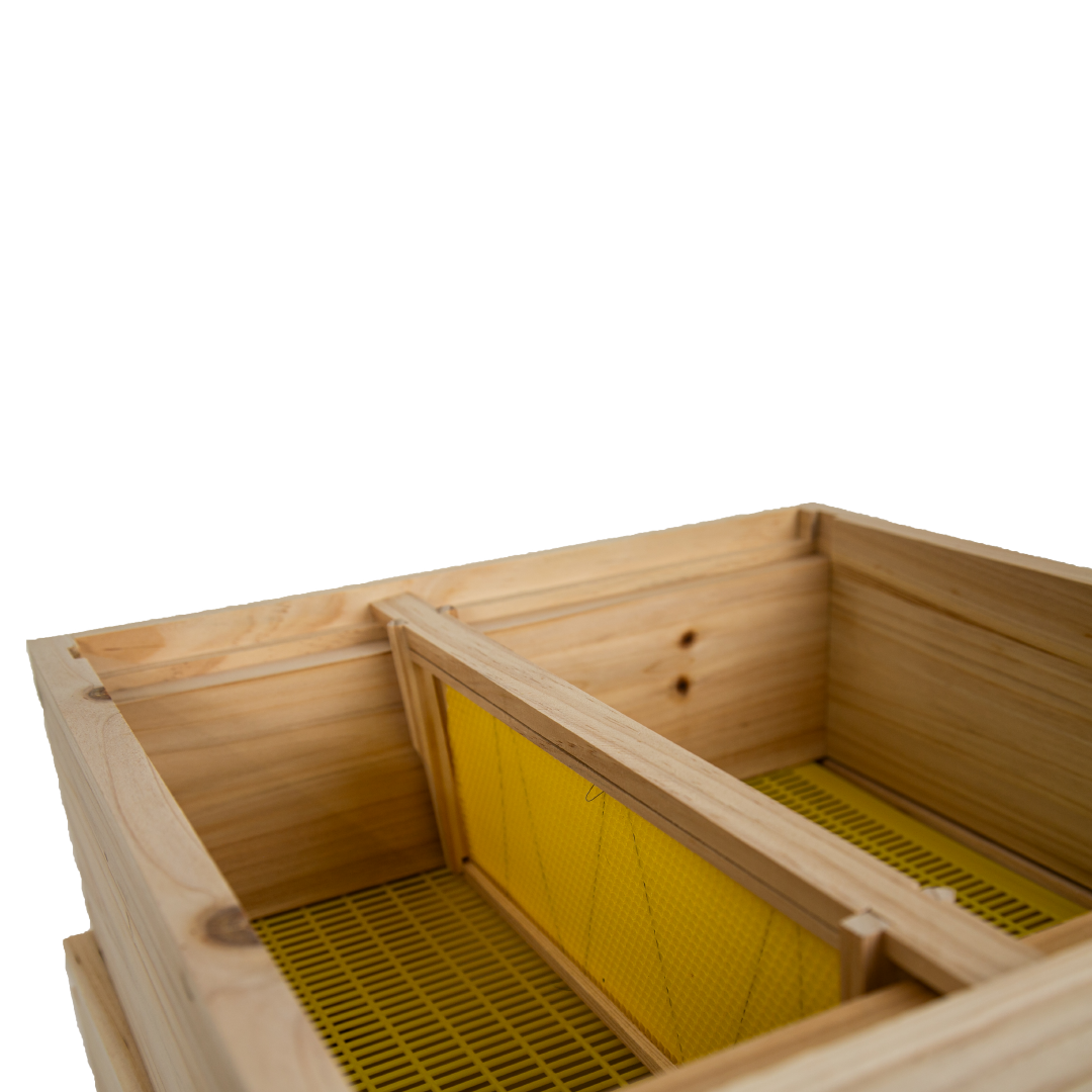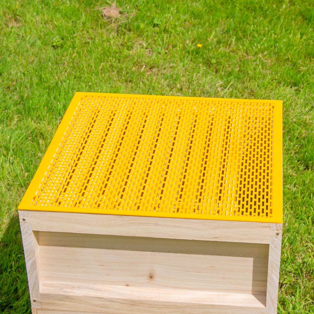 Our fir hives come with a plastic queen excluder, ensuring you can harvest your honey without destroying your colony. The queen excluder is placed between the brood box and the lower super and due to the size of the holes, the queen is excluded from going into the supers (as the name suggests).