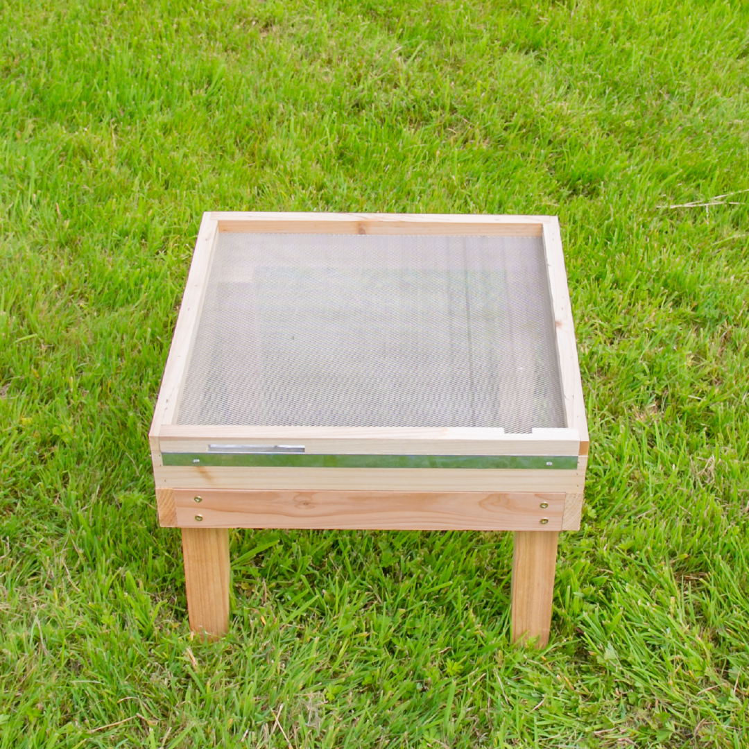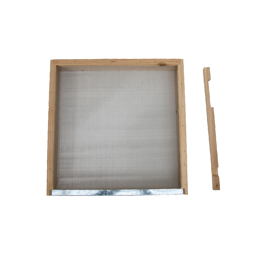 The bottom of our hives are made up of a metal mesh floor. There are many benefits to having a mesh floor rather than a solid floor. One of the main benefits being better ventilation in your hive, limiting moisture that can be damaging to your bees and hive.
