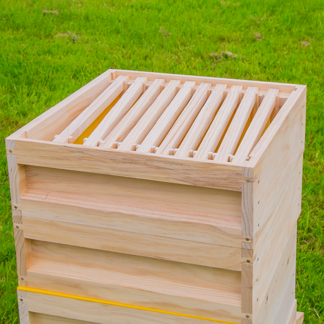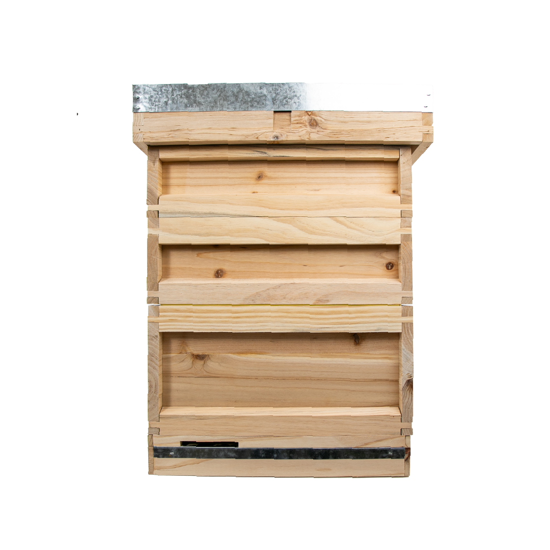 Our fir beehive is the answer to those looking for a strong and budget-friendly beehive. The close, tight-grain lines in the fir wood ensures long-term durability, preventing warping and twisting over time. The non-porous nature of the wood ensures a stable and protective environment for your bees, shielding them from the elements year-round.