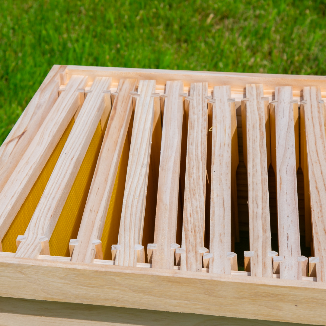Supers are where the delicious magic happens. Housing the frames and foundation sheets, bees store their honey in the supers. At Hiveology, our hives are made up of 2 supers with 11 frames and 11 foundation sheets in each, creating plenty of space for your bees to buzz up some tasty fresh honey.