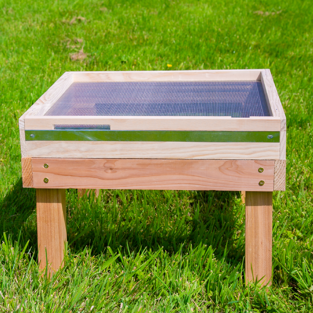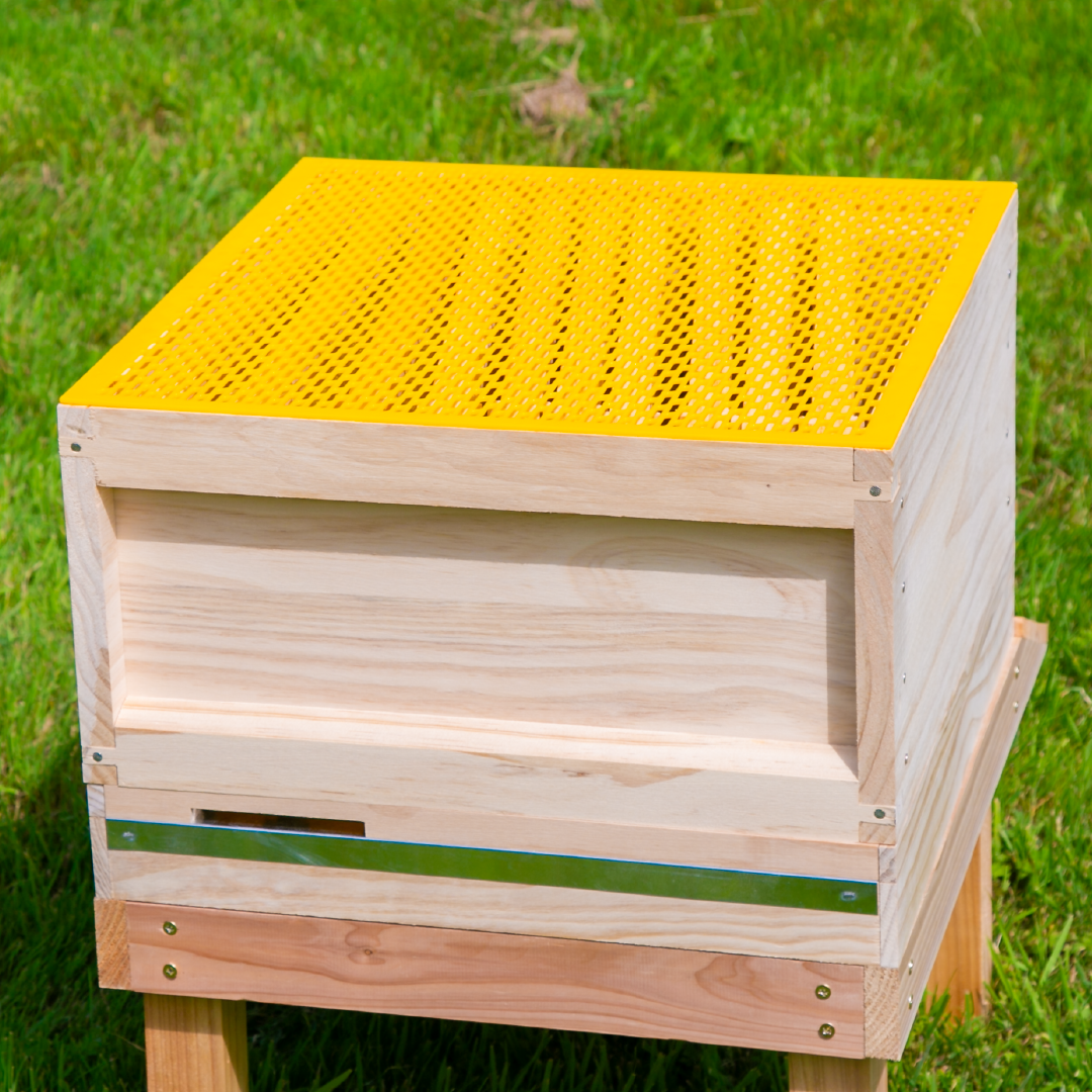 The bottom of our hives are made up of a metal mesh floor. There are many benefits to having a mesh floor rather than a solid floor. One of the main benefits being better ventilation in your hive, limiting moisture that can be damaging to your bees and hive.