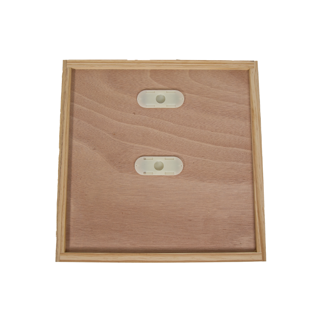 The crown board is a layer of pine wood that fits between the upper super and the hive roof. With 2 holes cut out in the wood, the crown board is handy for providing your bees with some extra food during winter or when you’re starting the hive. These holes can also be used to get a sneak peek at how your bees are doing with minimal disturbance to the colony.
